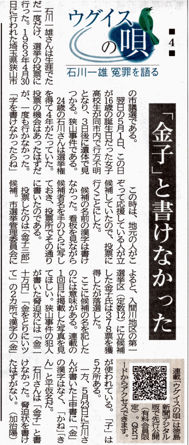 徳島新聞 ウグイスの唄 (4) 2026年3月17日