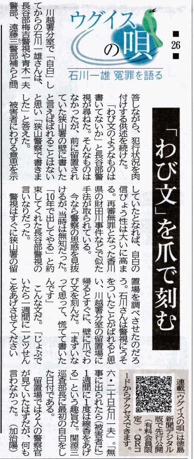 徳島新聞 ウグイスの唄(26) 2026年4月9日