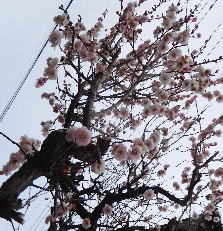 ココちゃんと散歩途中、梅が満開だった。