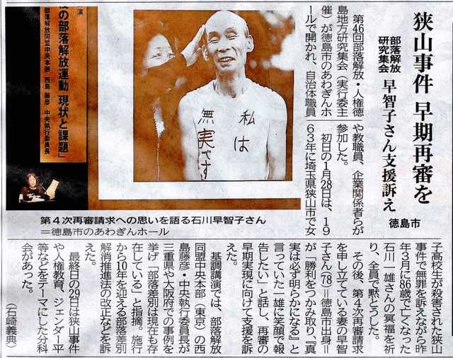 早智子のふるさと「徳島」で一雄が微笑んでいる 徳島が大好きだった一雄 「新聞みてるかなぁ」 一雄の長い長い再審開始・無罪獲得の闘い 沢山の人が応援してくれているよ 元気が出るね ありがたいね Tさんありがとう