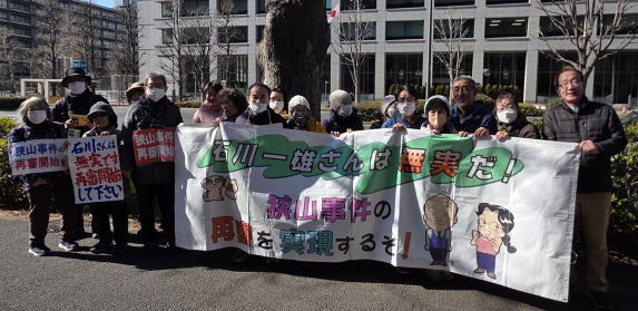 2月2日、東京都連女性部が中心になって、東京高裁への要請行動が取り組まれた。コロナ禍の中も、一雄が体調を崩してからも、休むことなく「何としても狭山の事実調べ・再審開始を勝ち取る」と闘い続けられてきた。今回は3月に退官する家令裁判長に「鑑定人尋問の道筋をつけてほしい」と参加者全員がマイクアピールをされたそうだ。