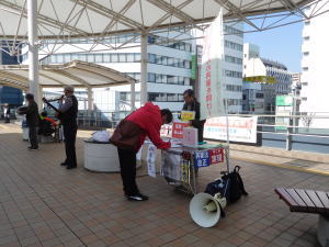 毎月23日、川越駅と狭山市駅で交互に情宣行動が続けられている。