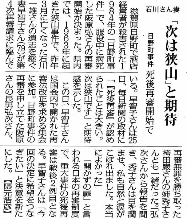 2026年2月25日、滋賀県日野町で起きた「日野町事件」の第2次再審請求審で最高裁は、大阪高検の特別抗告を棄却。再審開始の扉が開いた。死刑や無期懲役が確定した戦後の事件で、「死後再審」が確定したのは初めてだそうだ。「開かずの扉」と言われている日本の再審制度「狭山」もなかなか動かなかった。しかし、この決定に、大きな希望をもらった。検察の卑劣な裁判の引き伸ばしで、裁判が長期化することや、警察・検察の自白誘導、捏造の不正義が、次々と明らかなっている。「再審制度」の見直しがクローズアップしている今、えん罪被害者がこれ以上苦しまなくていいように、えん罪被害者が救済されるような、再審法改正が一日も早く成立するよう願っている。