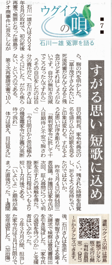 徳島新聞 ウグイスの唄 (7) 2026年3月20日