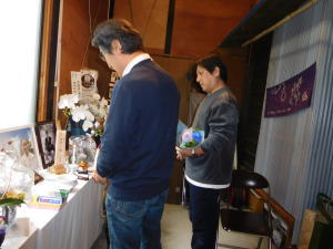 近くにお住まいのA・淳子さんから「一雄さんにお線香をあげに伺いたい」と、お手紙を頂いていた。20日、14時に現地事務所に来て下さった。Aさんとは、私が狭山に来る前からの知り合いだ。もろさわようこさん主催の「歴史を拓くはじめの家」で、40年くらい前に長野県で出会った。その後狭山で再びお会いするようになるとは思ってもみなかった。