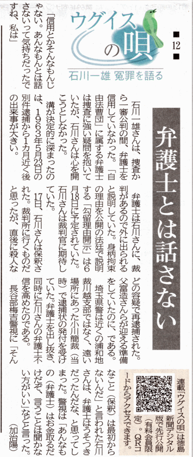 徳島新聞 ウグイスの唄(12) 2026年3月25日