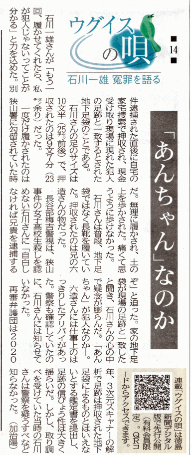徳島新聞 ウグイスの唄(14)2026年3月27日