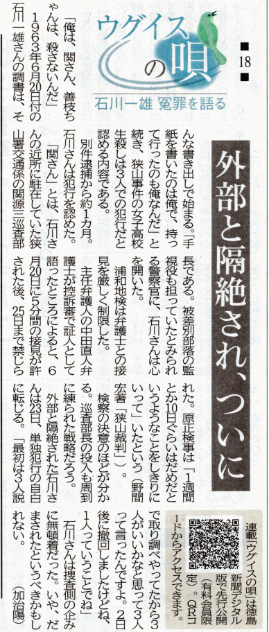 徳島新聞 ウグイスの唄(18 )2026年3月31日