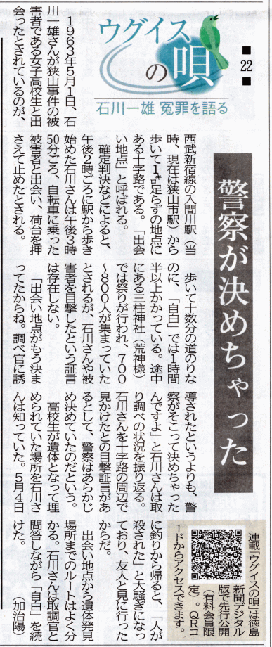 徳島新聞 ウグイスの唄(22) 2026年4月4日
