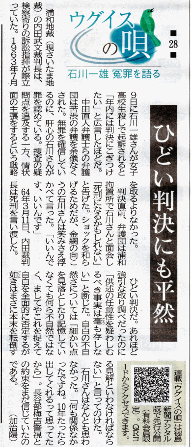 徳島新聞 ウグイスの唄(28) 2026年4月11日