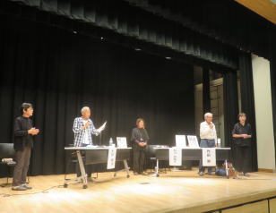 | 「差別裁判打ち砕こう」 作曲者の作田さんと | 手話通訳の皆さんありがとうございました |